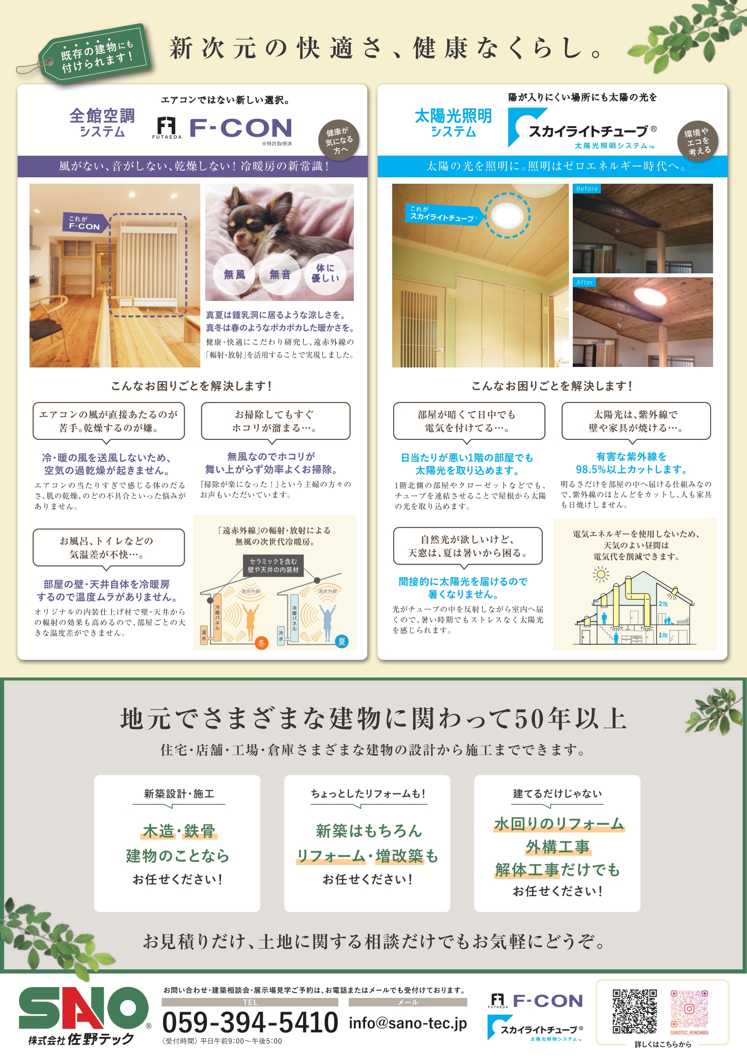 また、同日程で「F-CON・ソーラチューブ(旧商品名スカイライトチューブ)体感見学会」も併せて開催いたします。