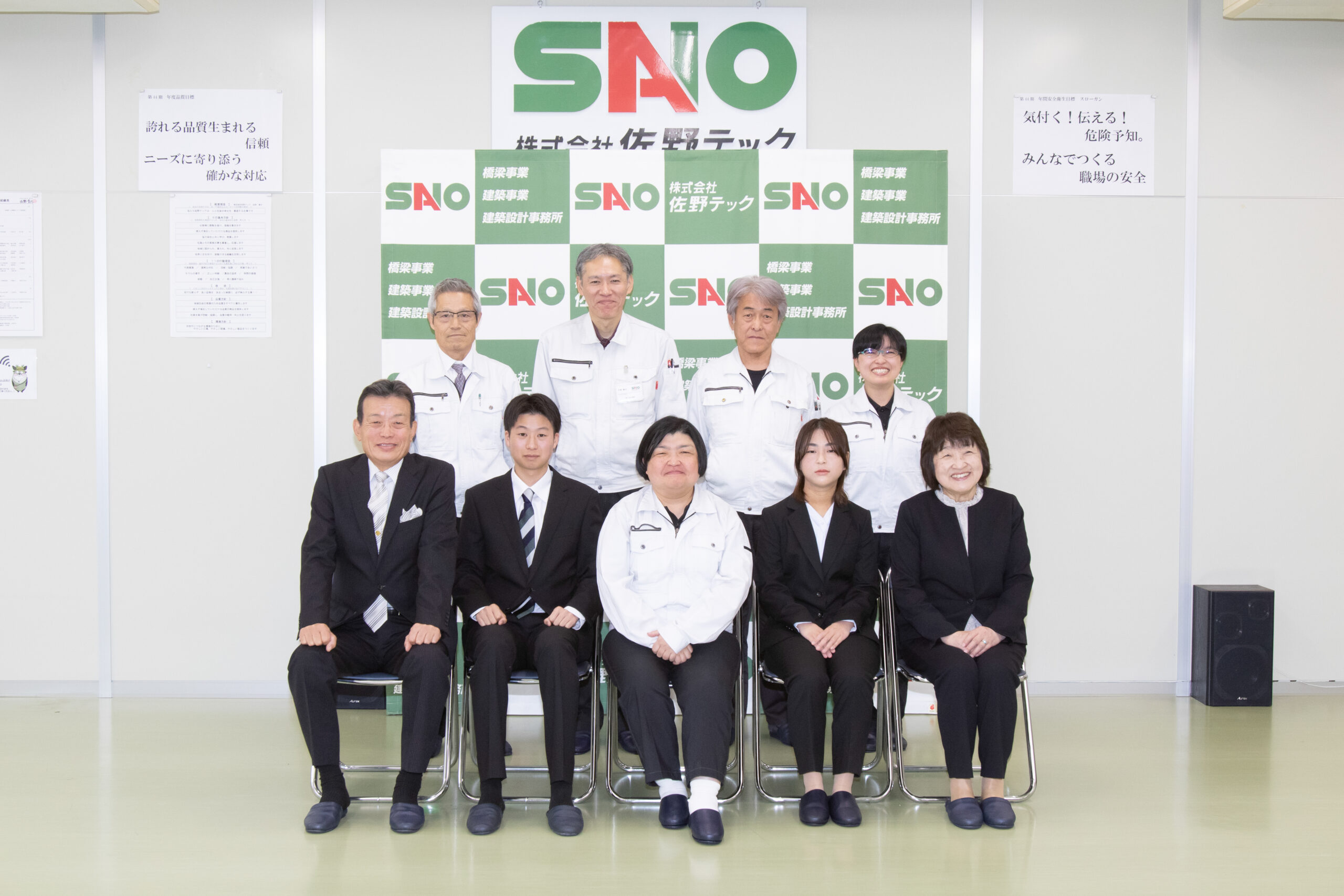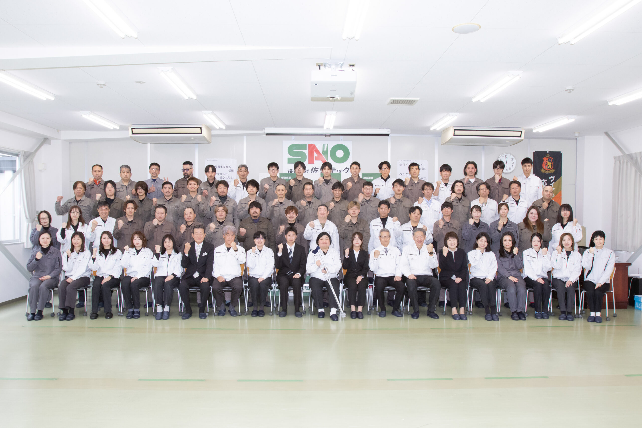 2026年4月1日(水)、入社式を行いました。今年は高卒の男性1名と女性1名の計 2名が入社しました。 社会人となって初めてのことだらけで、しばらくは戸惑うことも多いかと思います。 二人が一日でも早く会社に慣れて佐野テックになくてはならない人材に育ってくれる ことを願っています。 なお、社長はとある事情で初めての松葉杖を用いての入社式となりました。